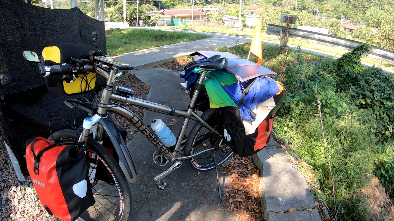 보성 녹차떡갈비 맛집에서 포식을 하고, 화순으로 넘어가는 시골길로 루트를 형성합니다. 자동차가 한 대도 안 다니는 조선시대 산길을 따라서 라이딩하다가, 이양면과 동면을 지나서 외딴 시골길 도나무 아래에서 야영을 합니다.