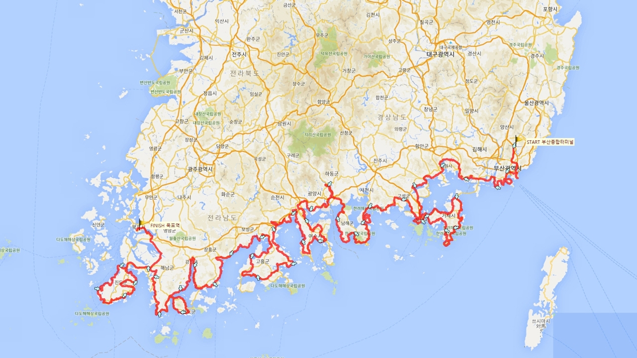 하지만 남파랑길 루트를 따라서 자전거 캠핑으로, 14박 15일 만에 깔끔하게 완성한 남해안 종주 1,500km 를 무사히 마치고, 최종 목적지인 목포항 도착에 성공한 남해안 종주의 현실적인 정보를 제시합니다.